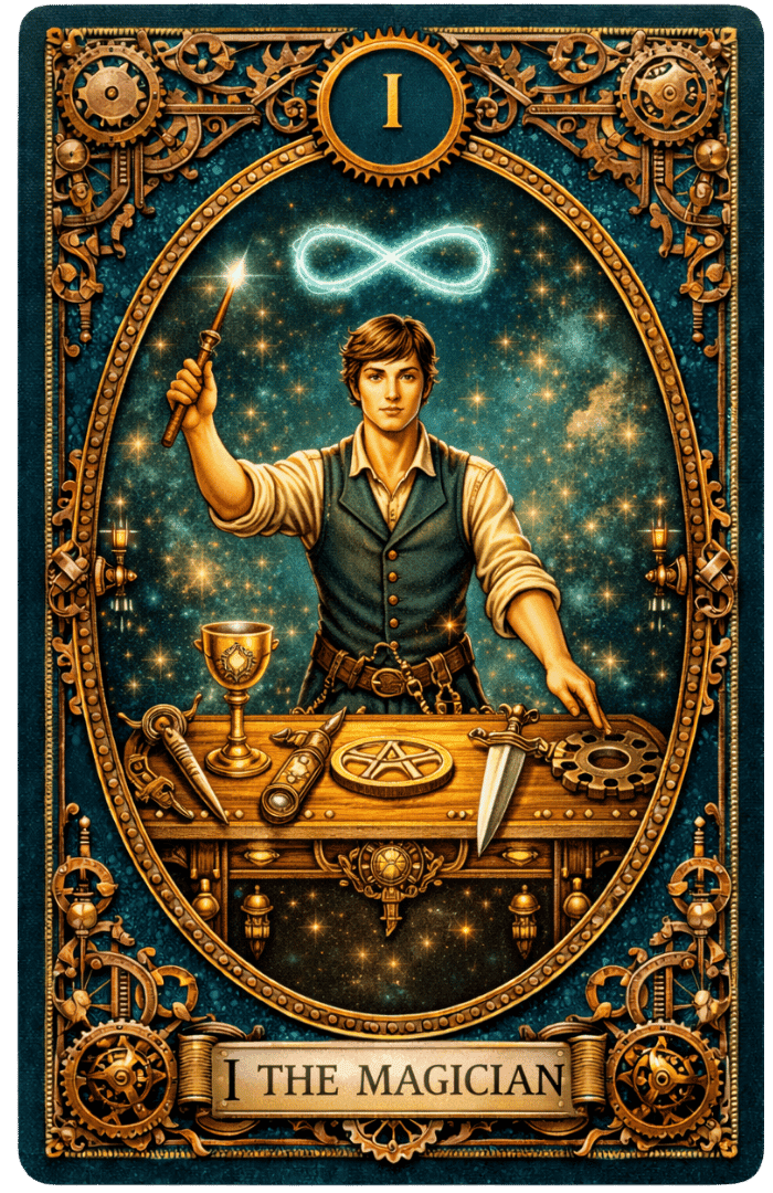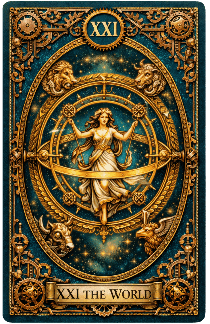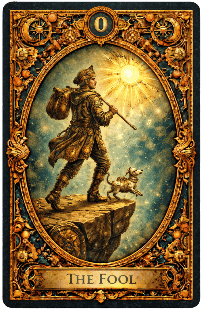 22 cards that chart the soul's journey — from The Fool's first step to The World's completion.